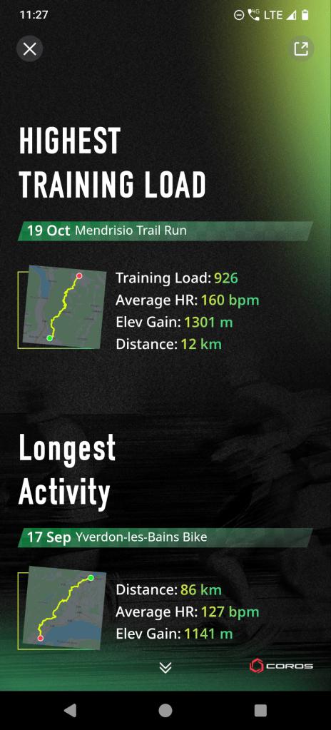 Addendum: the 1300m vertical race I mentioned at the beginning of my post was the activity with the highest training load last year, says my wonderful Coros watch: